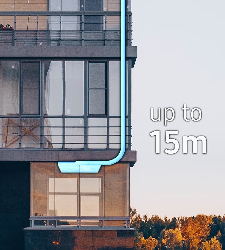 Medidas unidad exterior: 947 x 281 x 947 cm (ancho x alto x profundo)